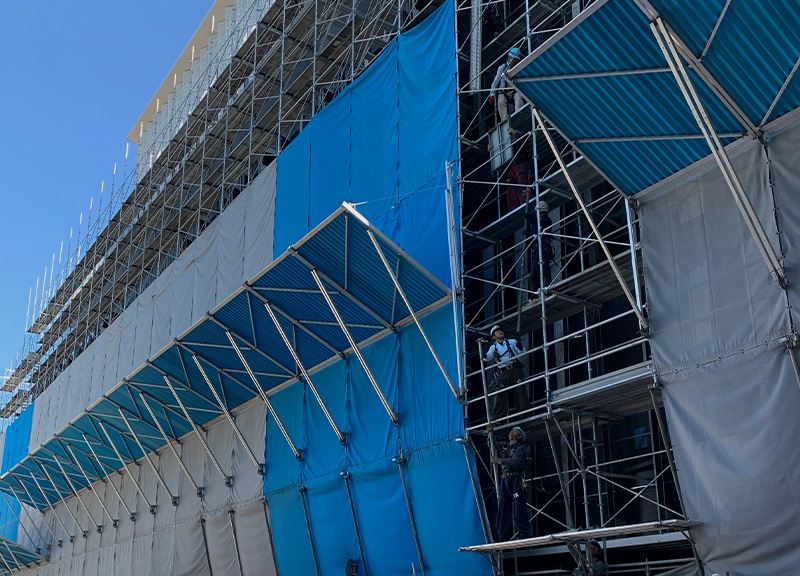 主にビル・高層マンションなどの施設を中心に豊富な経験と実績を有しており、駅ビルや大型商業施設、その他学校などの公共施設改修時の足場組立といった施工経験も有しております。